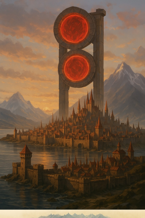 The city known as Chaskalla Bay doesn’t welcome many. Cut from volcanic stone and reinforced with alloys not native to this world, it clings to the coast like a fortification turned inward. Its twin portals hang with a glowing red menace, each a passage to the Astral Sea; complete with all the riches and threats beyond. No civilians, no distractions, no markets or parades. Just orders, logistics, and the cold precision of survival. Every street is a straight line to a barracks, battery, or launch point. Every citizen is trained. Every silence means someone is listening. Chaskalla Bay isn’t alive in the way cities usually are; it’s functional. Sharp-edged. Purpose-built. If you’ve come here uninvited, you’ve either made a deal… or a mistake.
